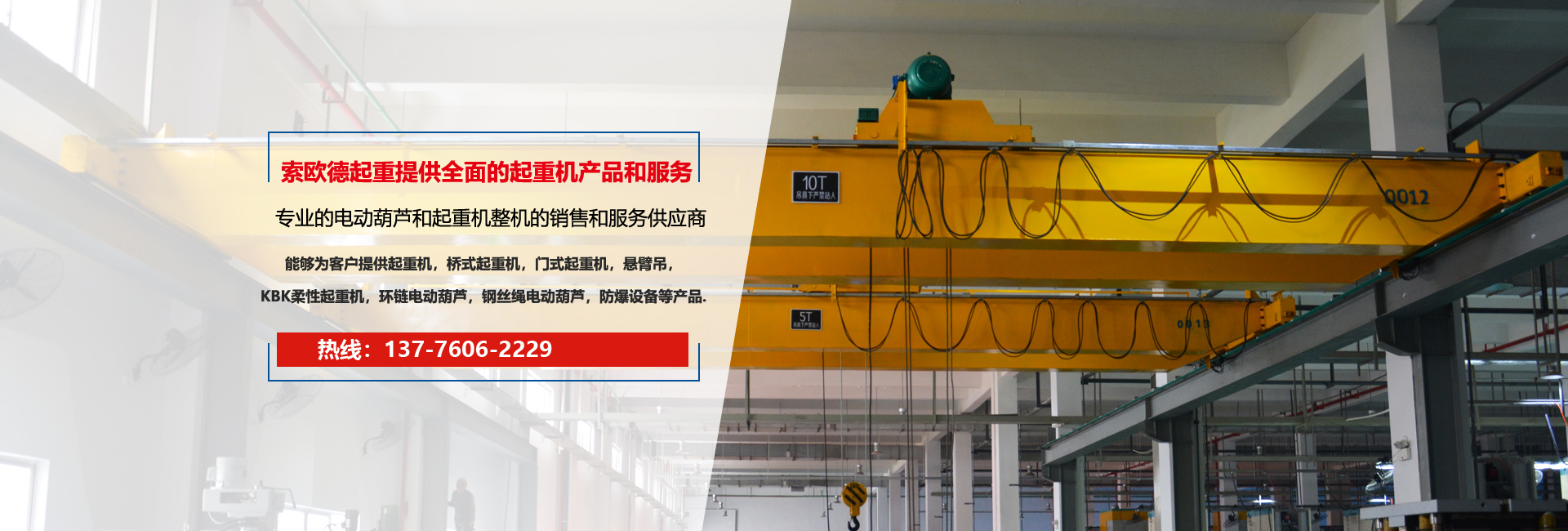 索欧德起重机械(苏州)有限公司作为专业的电动葫芦和起重机整机的制造和服务供应商,致力于起重机及物流搬运技术的发展和研究,采用新理念。勇于创新,开发新产品,不断追求工业进步,致力为客户供应“定制化”,专业,更安全,更经济的解决方案,满足客户对物料搬运,工艺布局。提升效率的要求。索欧德起重提供全面的起重机产品和服务,能够为客户提供起重机,桥式起重机,门式起重机,悬臂吊,KBK柔性起重机,环链电动葫芦,钢丝绳电动葫芦,防爆设备等产品。